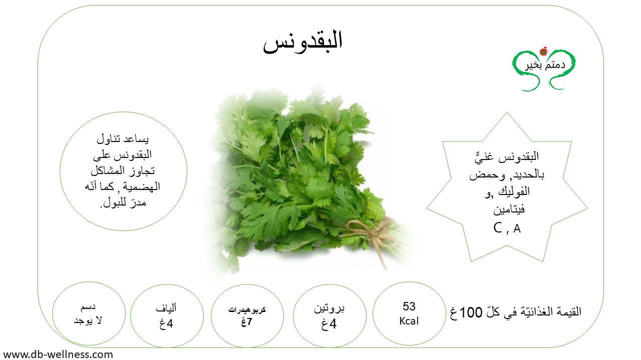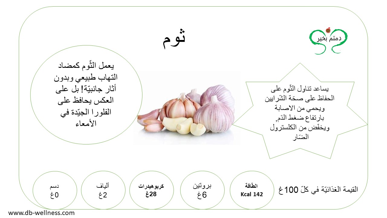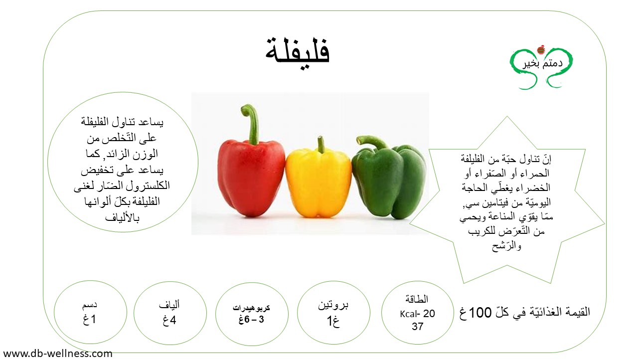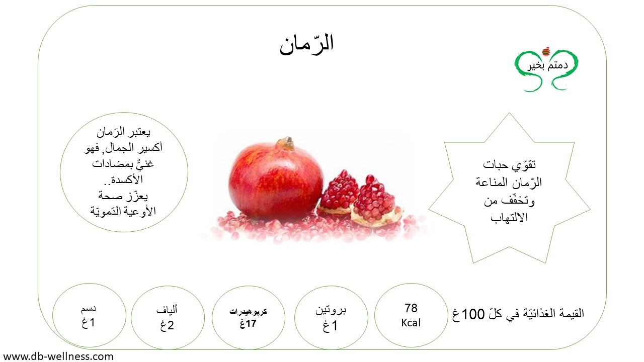 يُنصح بتناول الخضار والفاكهة يوميّاً, لأثرها الفعّال على الصّحة العامة, حيث أثبتت كثيراً من الدّراسات والأبحاث دورها في تعزيز مناعة الجسم, والحماية من كثير من الأمراض, لغناها بالفيتامينات والأملاح المعدنيّة أولّاً, وثانيّاً لاحتوائها على المواد النّباتيّة الثّانويّة والألياف. تقدّر الكميّة اليوميّة من الخضار الموسميّة المنصوح بتناولها بِ 400 غ نصفها نيء والنّصف الآخر مسلوق, أمّا الفاكهة مابين 200غ إلى 250غ. أمّا بالنسبة للفاكهة المجفّفة كالتين المجفّف والمشمش فتقدّر الحصّة اليوميّة منها بِ 25غ, وذلك يشمل أيضاً المكسّرات كاللوز والجوز والفستق...الخ, والتي يفضّل أن تكون غير مملّحة